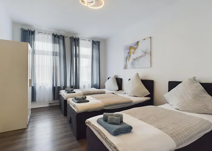 Dit appartement is gelegen op 15 minuten met de auto vanaf de Millenniumtoren Elbauenpark. De Dom van Magdeburg ligt binnen 15 minuten rjden van het 1-slaapkamer appartement.